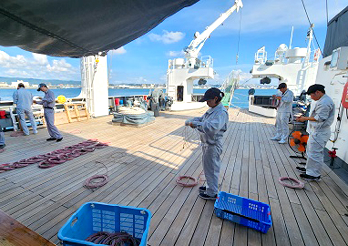 現在、海洋ゴミの調査や延縄漁具の整備、天測実習を行いながら、沖縄那覇港へ向け 順調に北上中です。